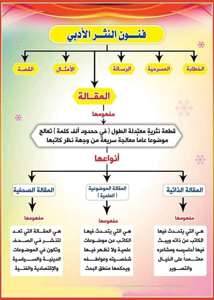والنثر في تقاليد الأدب العربي لا. الأدب عند الغرب يتمثّل في مجموعة الأعمال النّثريّة. ينقسم الأدب العربي إلى قسمين رئيسيين اذكرهما.